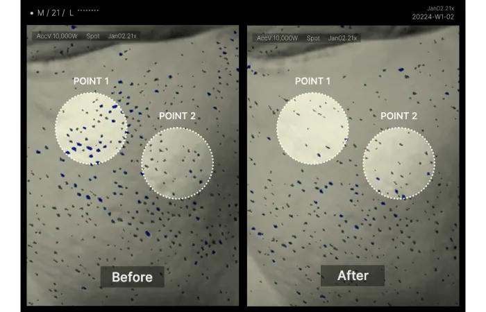 - Direct penetration into pores with a size 13 times smaller than the average pore, ensuring a precise and gentle reach.