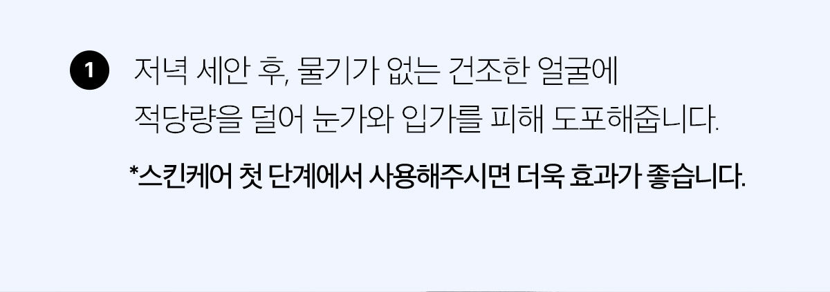 - After cleansing in the evening, apply an appropriate amount, avoiding the eyes and mouth, on dry skin.