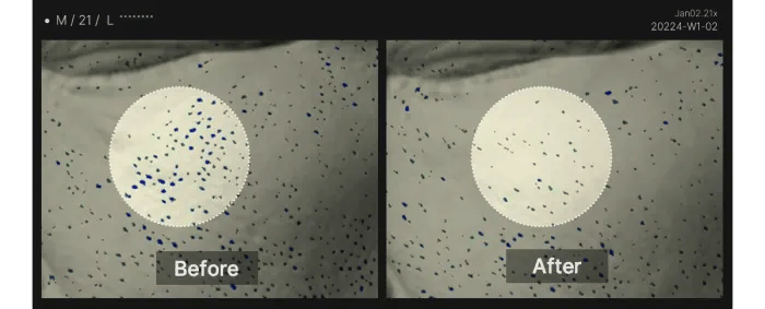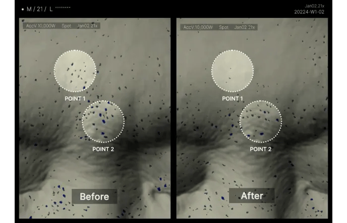 - Direct penetration into pores with a size 13 times smaller than the average pore, ensuring a precise and gentle reach.