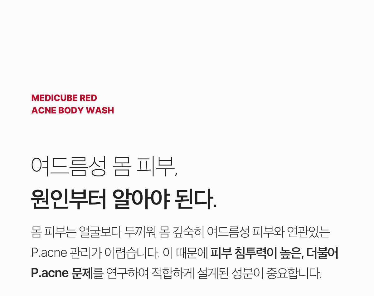 Elevate your body care routine with Medicube Red Acne Body Wash 2.0, and experience the difference of a scientifically formulated solution for clearer, smoother skin.