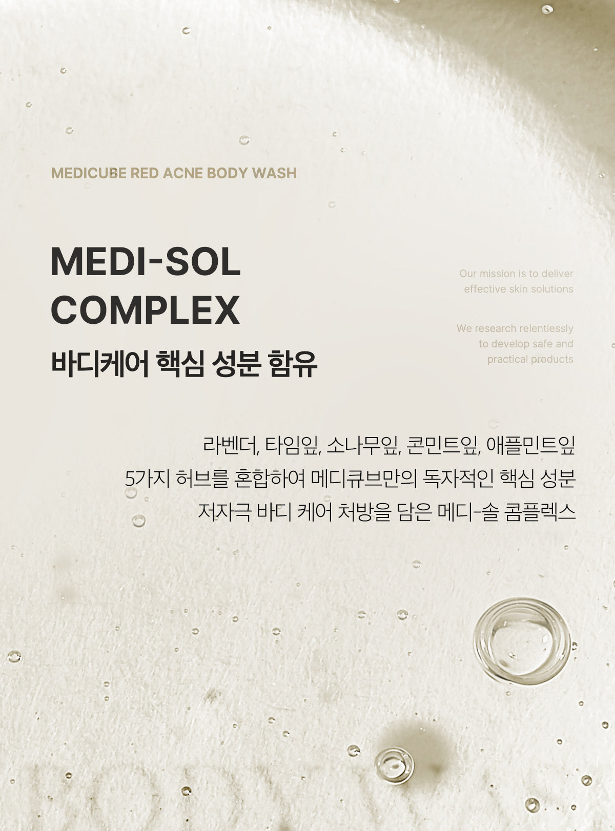 The MEDI-SOL COMPLEX, a perfect synergy of 5 natural herb extracts including Lavender, Thyme, Korean Red Pine, Wild Mint, and Apple Mint, is designed to treat body irritation while providing a refreshing cleansing experience.
