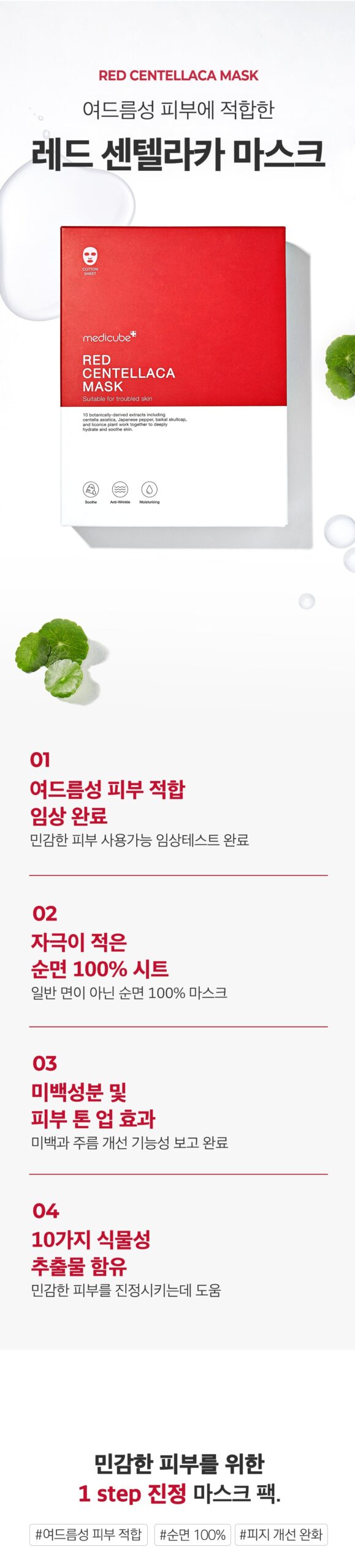 Introducing the Medicube Red Centellaca Mask, a comprehensive skincare solution designed specifically for those with acne-prone skin and skin bumps. This innovative product is part of the Red Line series, offering a three-step process that targets redness, sensitivity, and various skin concerns including large pores, flakiness, and oiliness. Ideal for anyone seeking a thorough and gentle skincare regimen, this 100% cotton mask is a must-have.