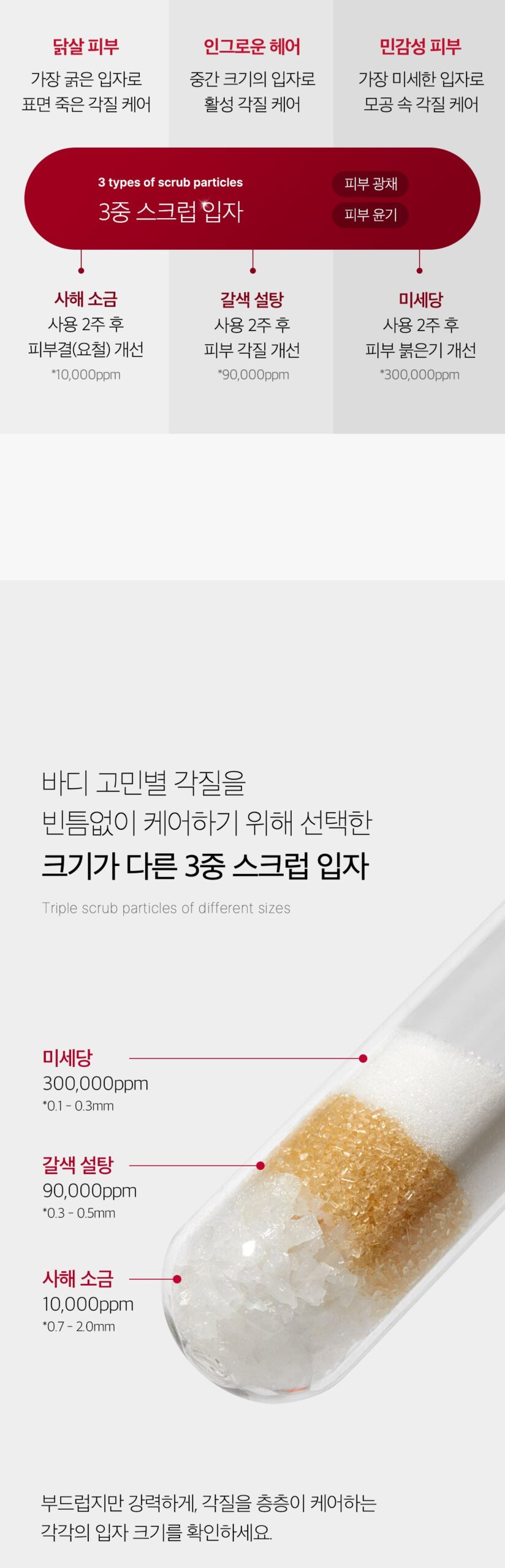 The Medicube Red Clear Cica Body Scrub is formulated with 100% natural ingredients. The color of the product may vary between batches, which is a natural occurrence and does not affect the product’s efficacy or safety.
