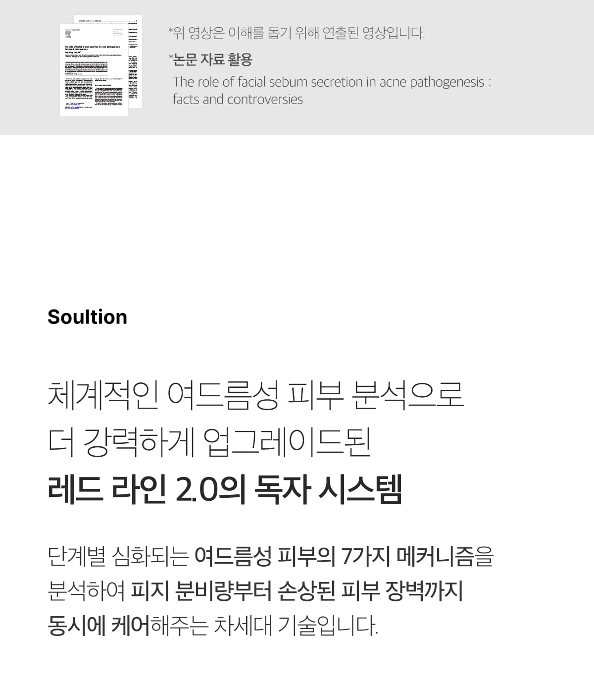 Red Serum 2.0 has undergone rigorous human application testing in 7 key areas: sebum control, blackhead reduction, dead skin cell removal, skin texture enhancement, redness reduction, skin barrier fortification, and moisturization. Additionally, the combined use of Red line 2.0 products has shown enhanced effects in reducing sebum secretion, dead skin cells, black/whiteheads, rough skin texture, and repairing damaged skin barriers over a two-week test period.