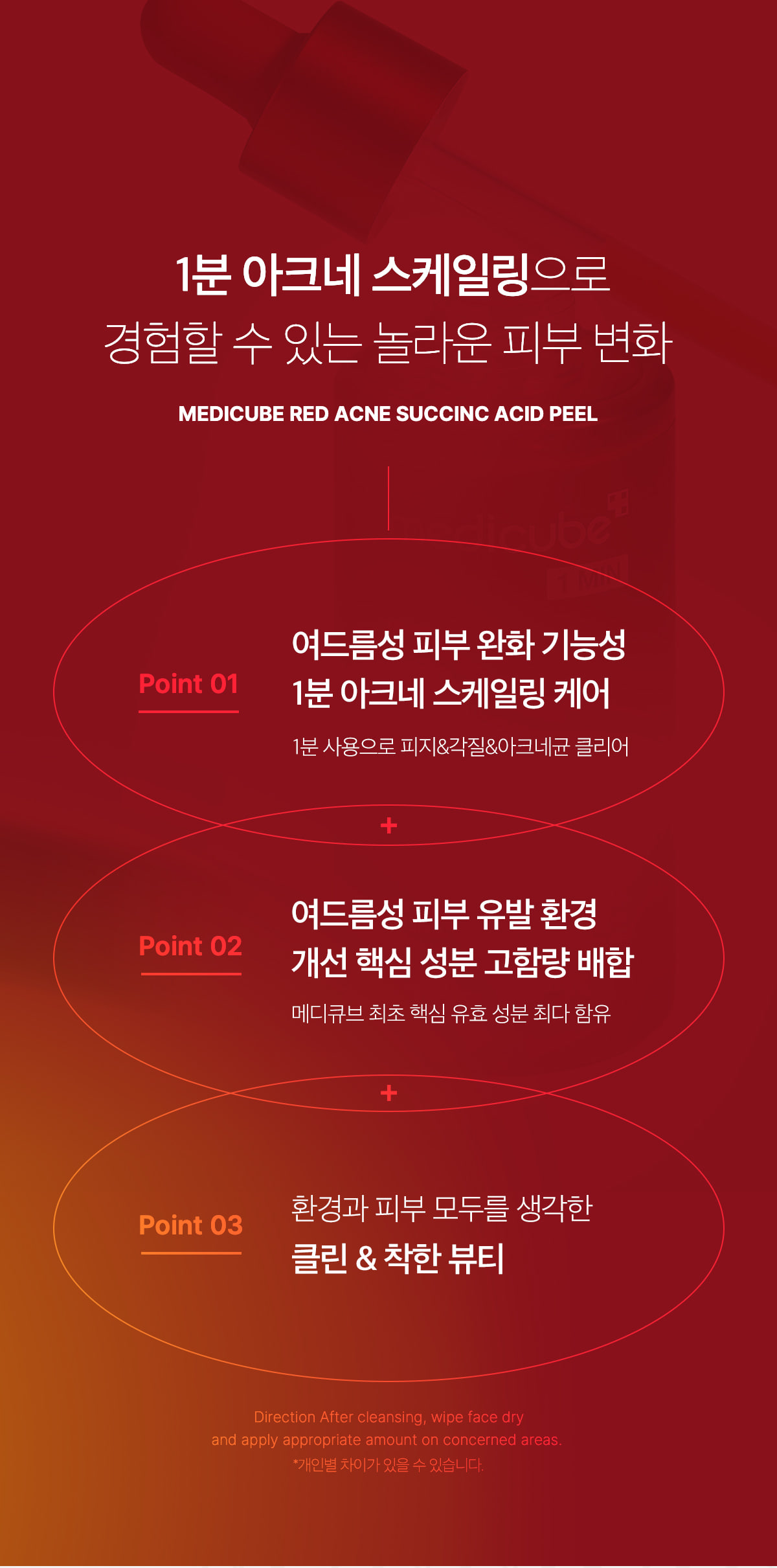 01. After washing your face, apply 1 dropper of peeling serum to both cheeks.