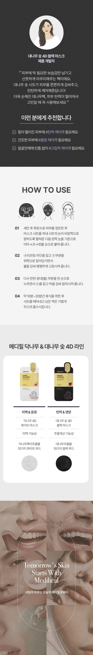I recently tried the Mediheal Bamboo Charcoal 4D Black Mask and was thoroughly impressed. The bamboo extract infused in the sheet offers powerful anti-wrinkle benefits while being incredibly gentle on my sensitive skin. After just one use, I noticed a significant boost in hydration and radiance; it left my skin feeling plump and revitalized. The mask conforms nicely to the face, allowing for an even distribution of moisture from the rich ingredients including those amazing 10 black foods packed with antioxidants.