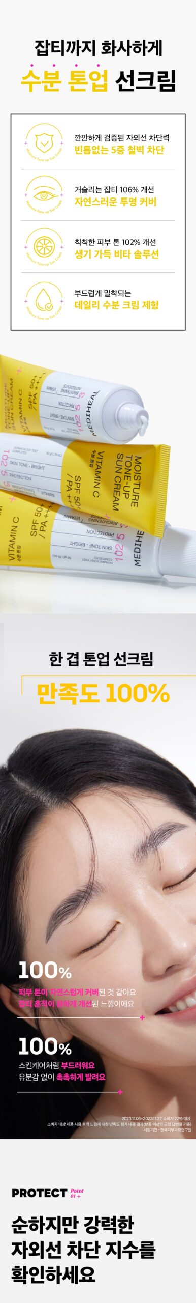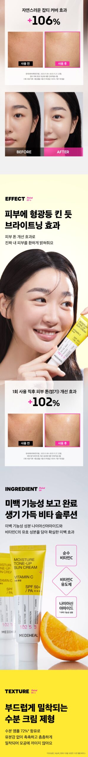 I recently tried the MEDIHEAL Moisture Tone Up Sun Cream and was genuinely impressed with its multifaceted benefits. The SPF 54.7 provides robust UVB protection, which is essential for my daily routine. I’ve noticed significant improvement in skin brightness and evenness thanks to the whitening properties, along with hydration that keeps my skin supple throughout the day. The lightweight formula absorbs quickly without leaving any greasy residue—perfect under makeup! It’s really a marvel that combines sun care with moisture infusion.
