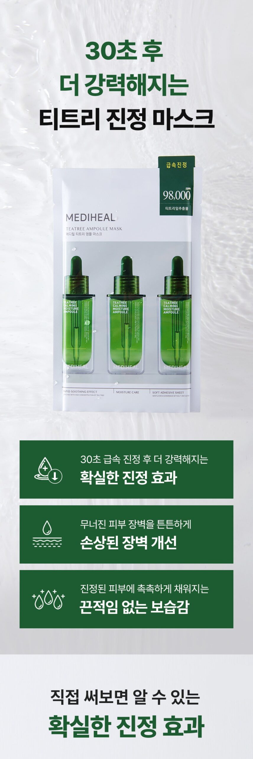 Our unique Mediheal tea tree formula offers reliable soothing for sensitive skin, featuring: