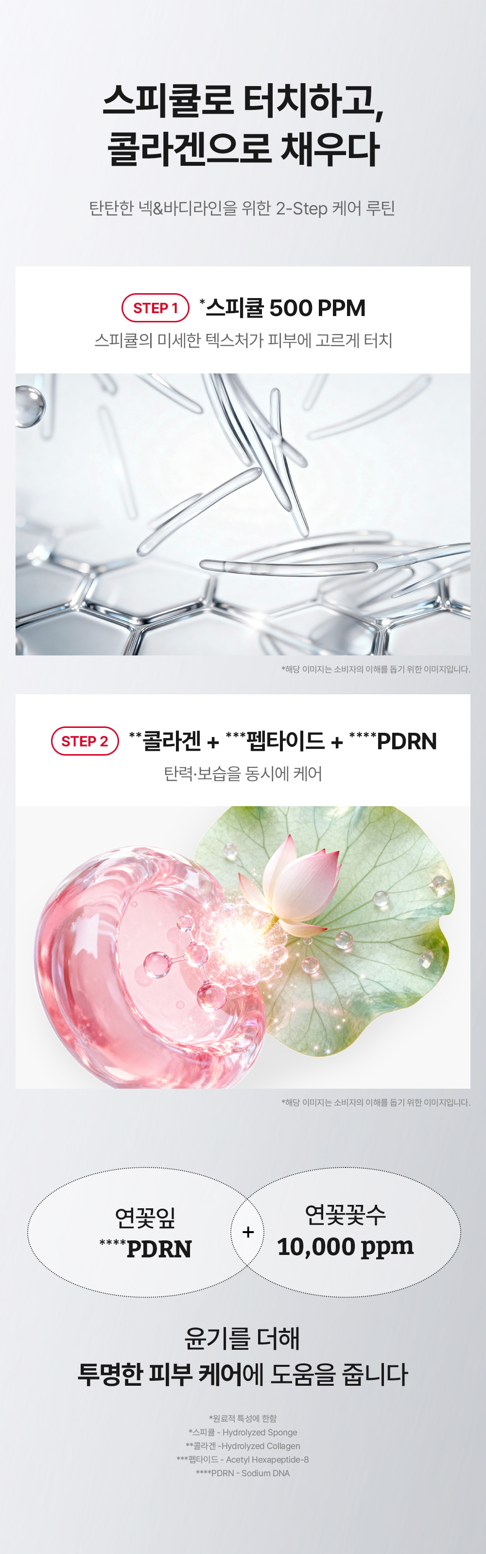 | Key Ingredients | Hydrolyzed Sponge (Spicule), Hydrolyzed Collagen, Acetyl Hexapeptide-8 (Peptide), Sodium DNA (PDRN), Lotus Leaf PDRN, Lotus Water |