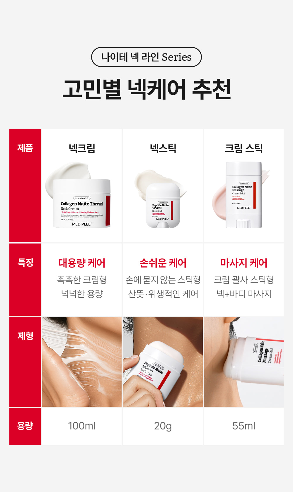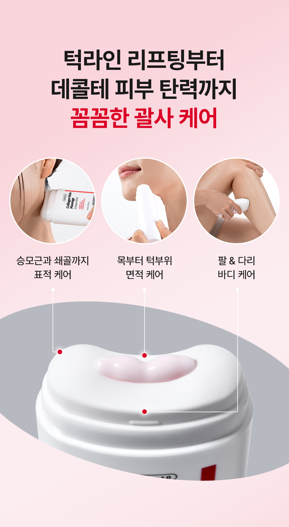 From stubborn neck wrinkles and double chins to sagging décolleté and body areas, achieve complete neck and body care with just one powerful stick. The MEDIPEEL Collagen Naite Massage Cream Stick 1.0 provides targeted solutions for multiple concerns: