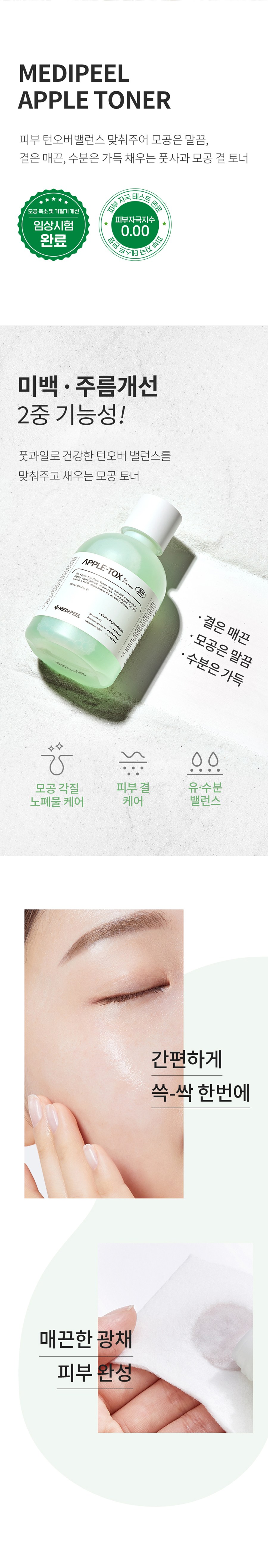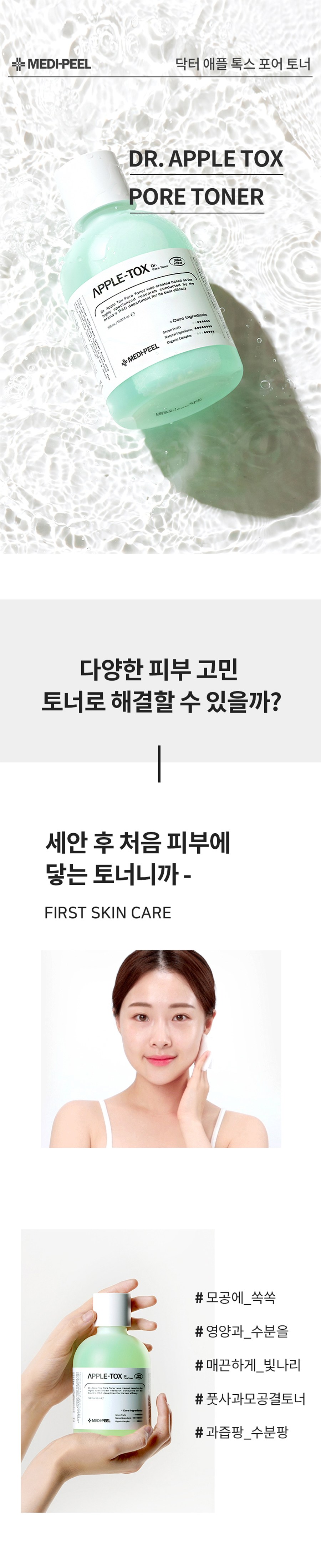 Transform your skin with the refreshing and effective MEDIPEEL Dr.Apple Tox Pore Toner. Add this essential step to your daily regimen for a clearer, healthier, and more radiant complexion!