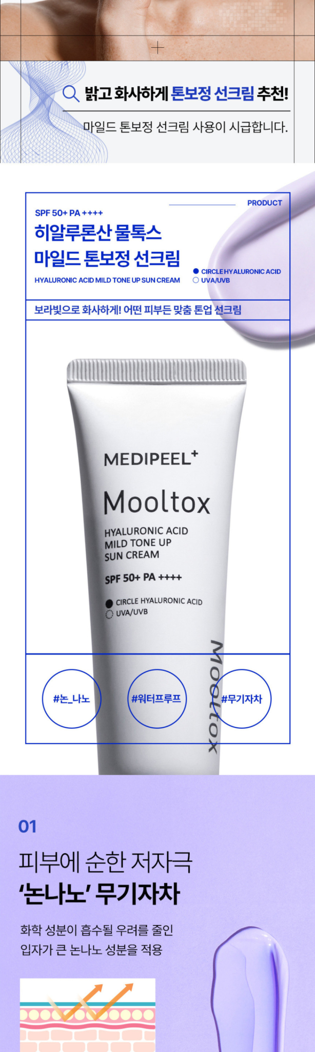 MEDIPEEL Mooltox Hyaluronic Acid Mild Tone Up Sun Cream SPF50+ PA++++