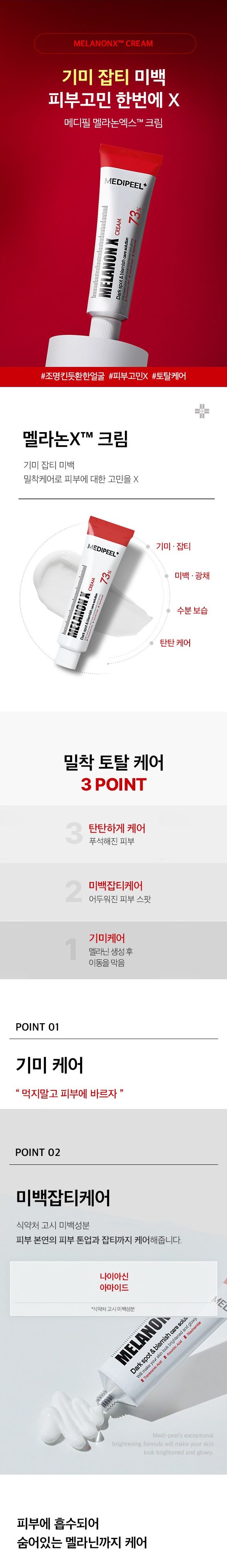 From the subtle freckles (Point 01) to more pronounced dark spots (Point 02) and overall unevenness (Point 03) as seen in our visual analysis, MEDIPEEL Melanon X Cream is engineered to deliver a comprehensive solution.