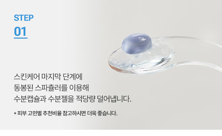After cleansing and applying serum, scoop an appropriate amount with the spatula. Apply to face and gently massage. The capsules will burst and blend into the cream, releasing concentrated hydration.