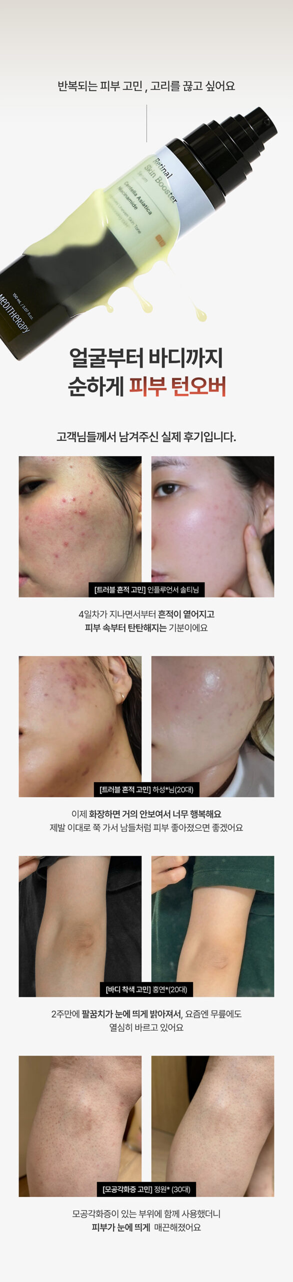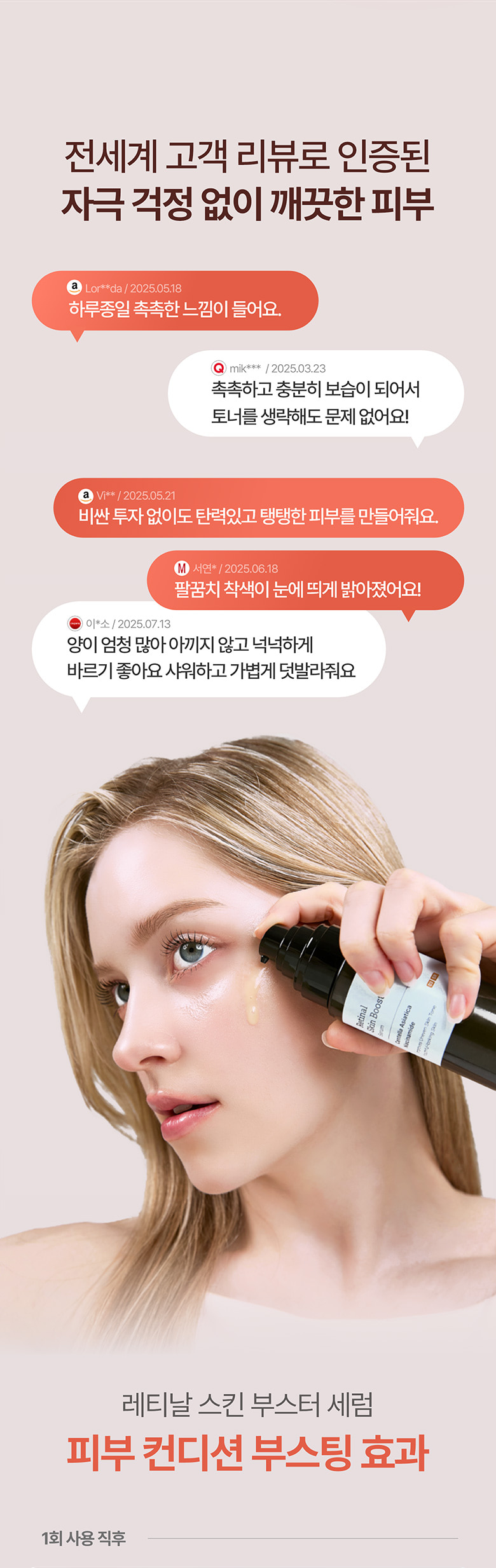 Trusted by tens of thousands every month with a 95% customer satisfaction rating, the Retinal Skin Booster Serum is designed to rejuvenate skin safely—even for those with sensitive or acne-prone skin. With advanced nano-liposome technology and a powerful Retinal X Cica Biome Synergy Complex, this serum delivers proven results without the irritation often caused by traditional retinol.