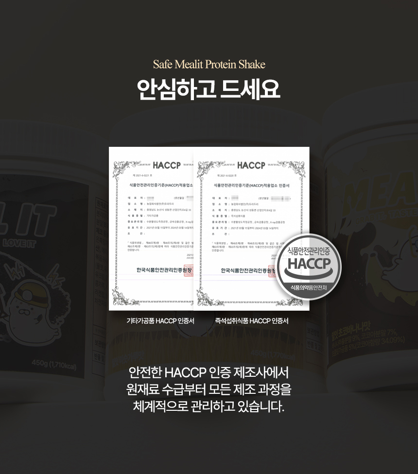 Every MEAL IT protein shake is produced under a rigorous, HACCP-certified process, guaranteeing the highest standards of safety and quality: