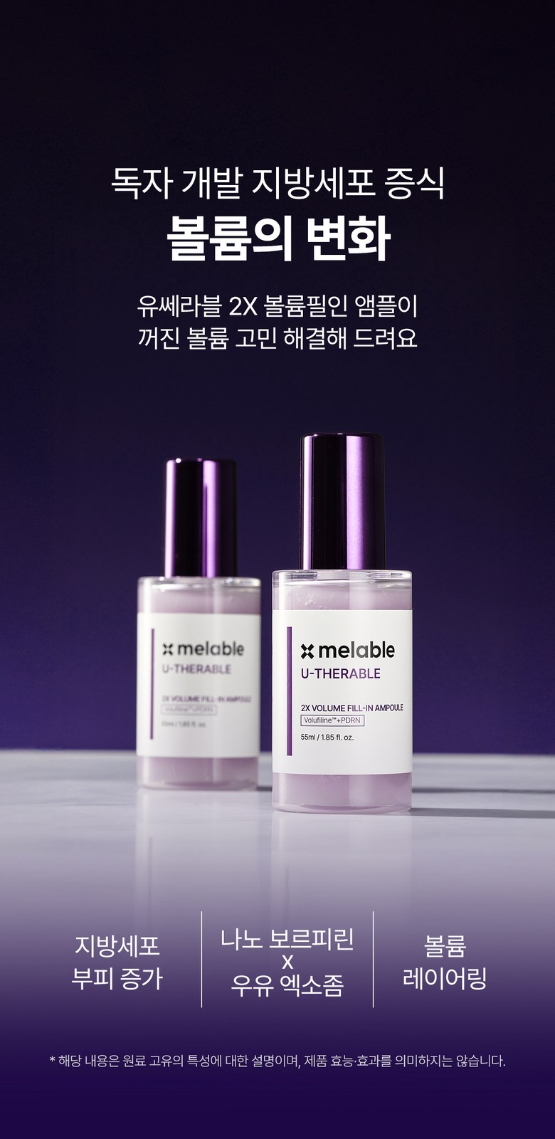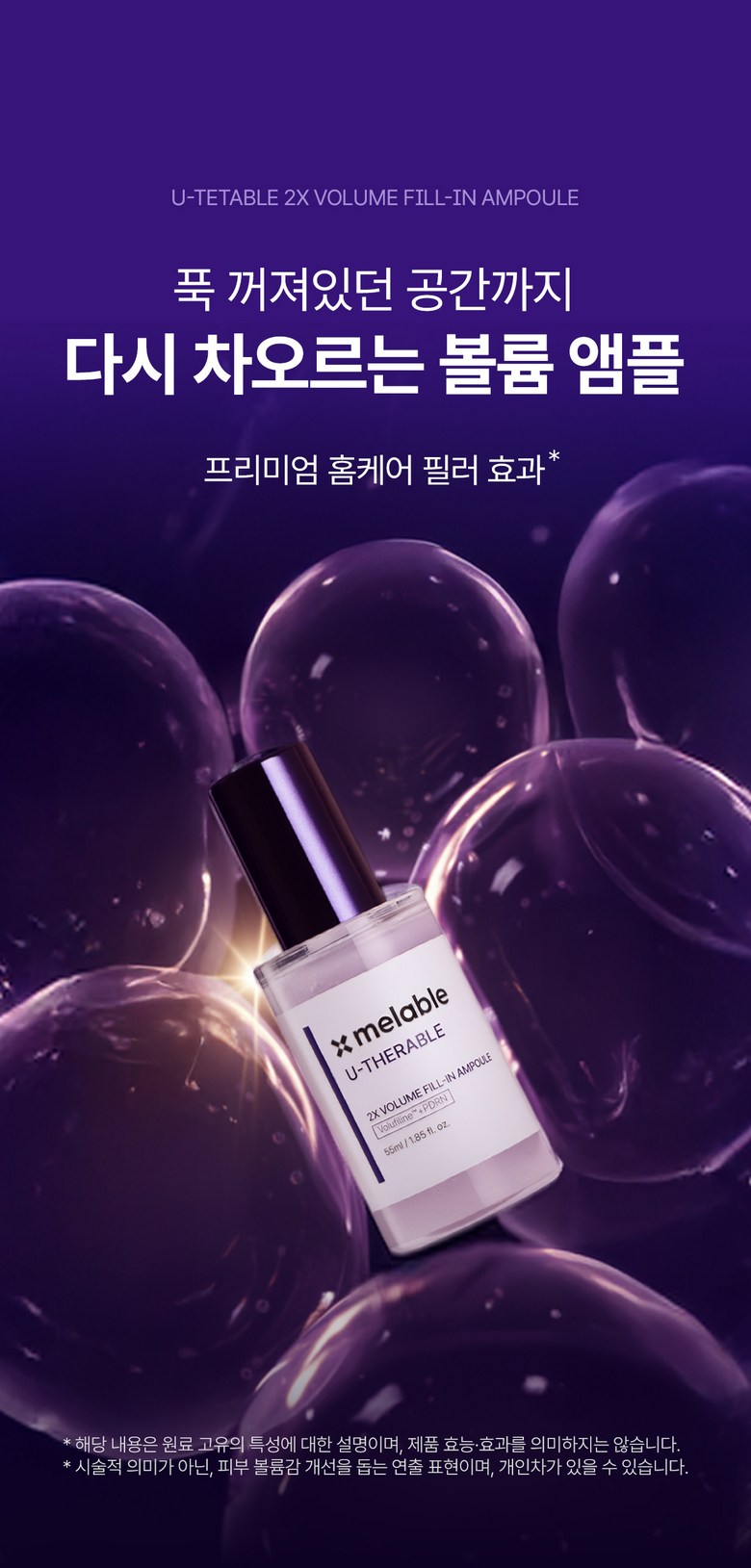 Unveil a visibly plumper, firmer, and more radiant complexion with the Melable U-Therable 2X Volume Fill-In Ampoule. This innovative anti-aging serum is meticulously crafted with proprietary ingredients like Nano Volufiline™ and PDRN to address the root causes of volume loss, helping to restore a youthful, sculpted appearance.