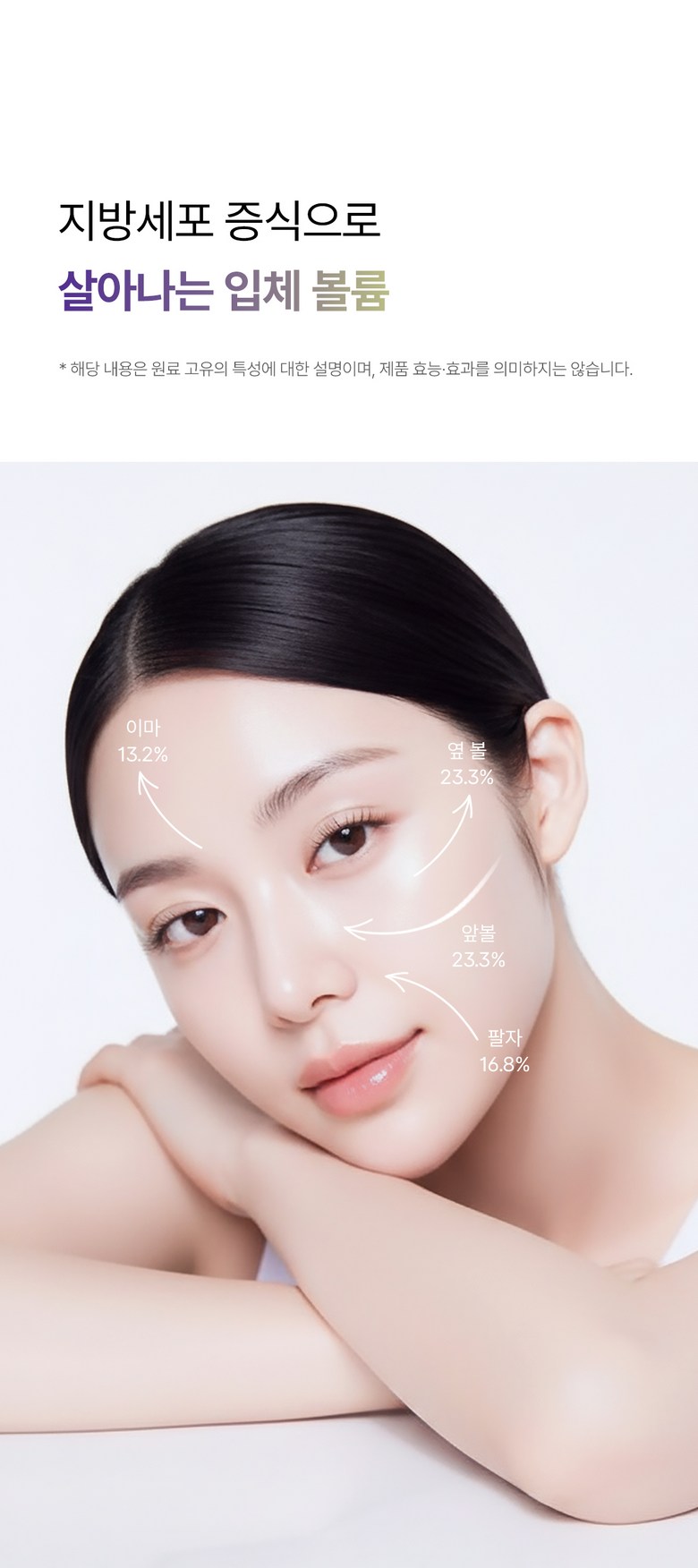 *This content describes the unique characteristics of the raw material and does not imply product efficacy or effects. This is an expressive representation to help improve skin volume, not a treatment, and individual results may vary.