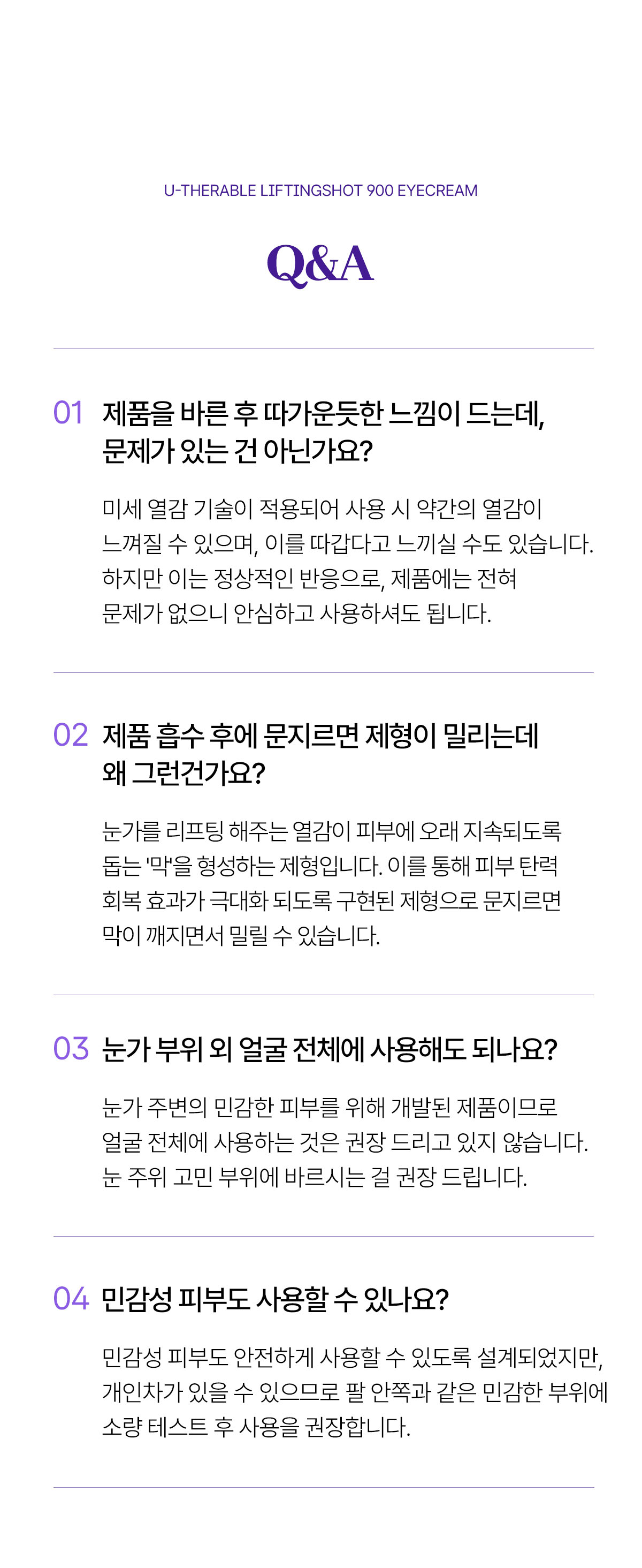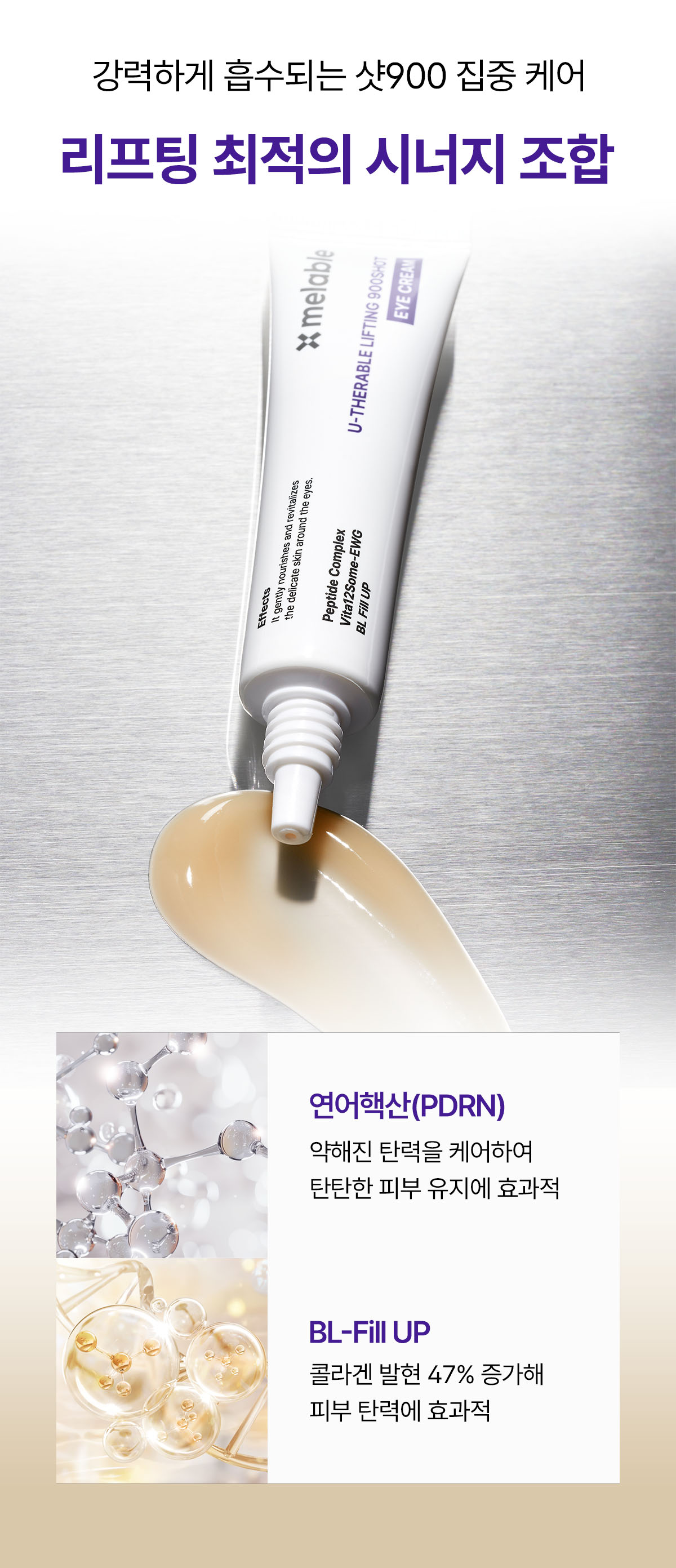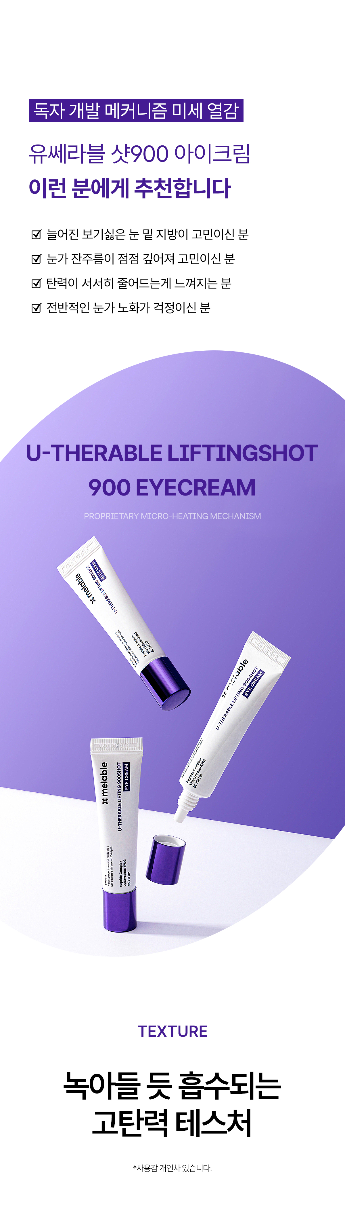 As soon as you apply U-Therable Lifting 900 Shot Eye Cream, a gentle warming sensation is delivered to the skin, activating regenerative cells and rebuilding sagging areas.