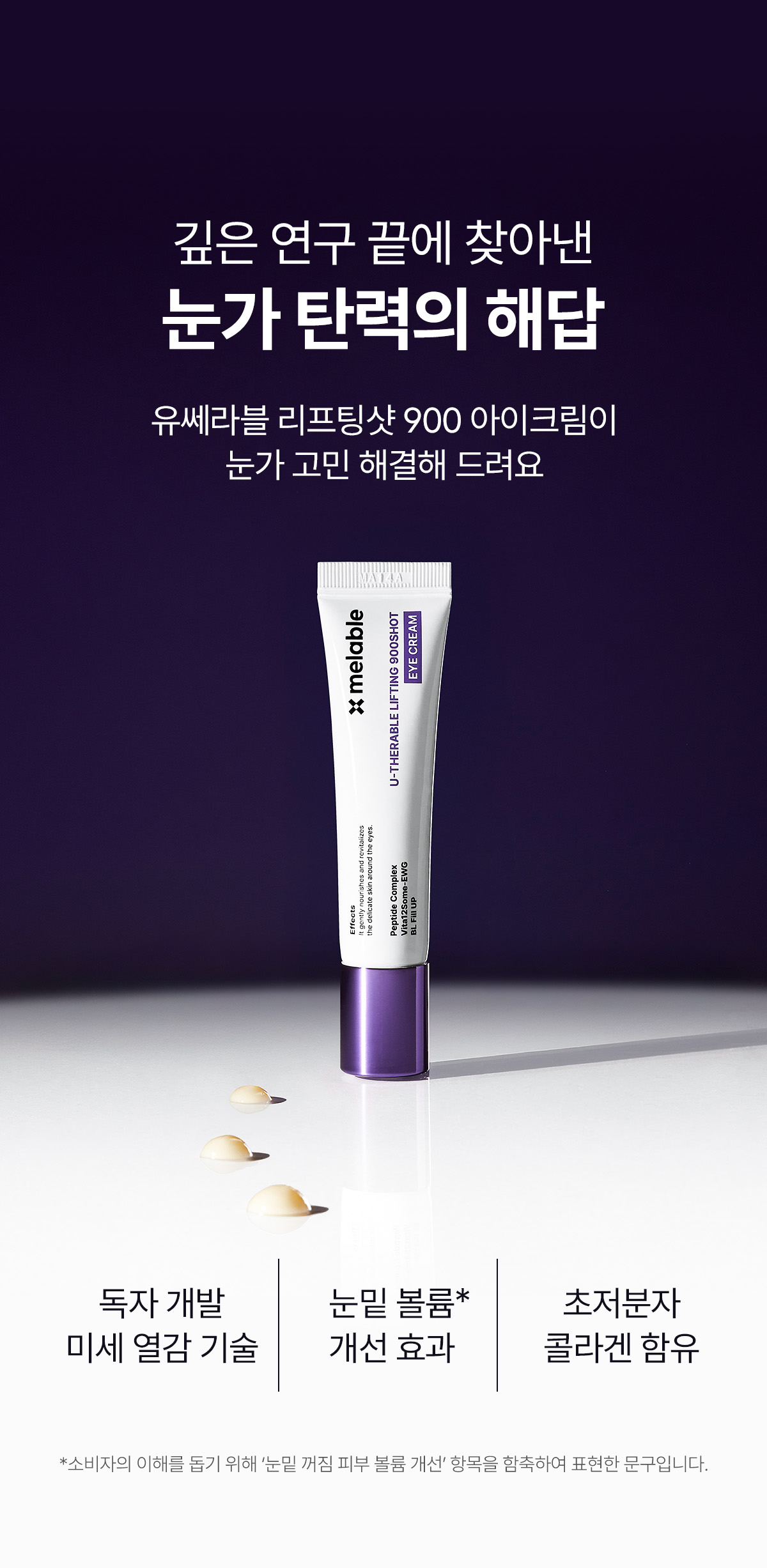 After using the melable U-Therable Lifting 900 Shot Eye Cream for a week, I noticed significant improvement around my eyes. The micro-heat technology truly seems to awaken my skin; it felt noticeably firmer and more elastic after just one application. My under-eye bags reduced substantially—by about 162.73% according to their claims—and fine lines appeared smoother. The lightweight formula absorbs quickly, leaving no residue behind and is perfect for morning routines before makeup.
