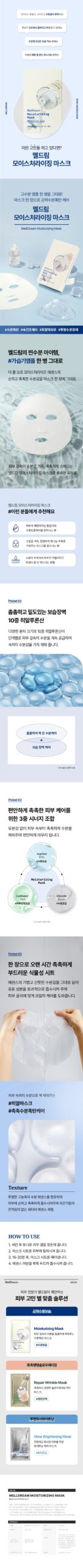 Infused with the same powerful moisturizing essence as the Melldream The Full Off Moisturize Ampoule, each mask provides intensive care for dehydrated skin.