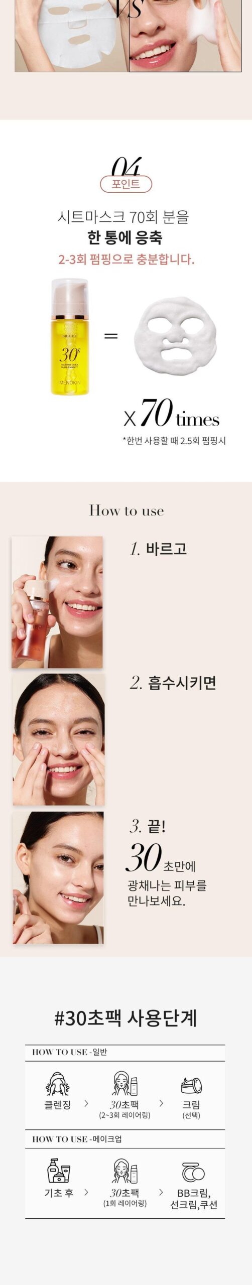This product introduces a revolutionary concept in skincare. Unlike traditional sheet masks or wash-off masks, this innovative mask pack requires no sheet and no rinsing. It’s a super easy, 30-second quick bubble mask pack that offers convenience and results in one simple step.