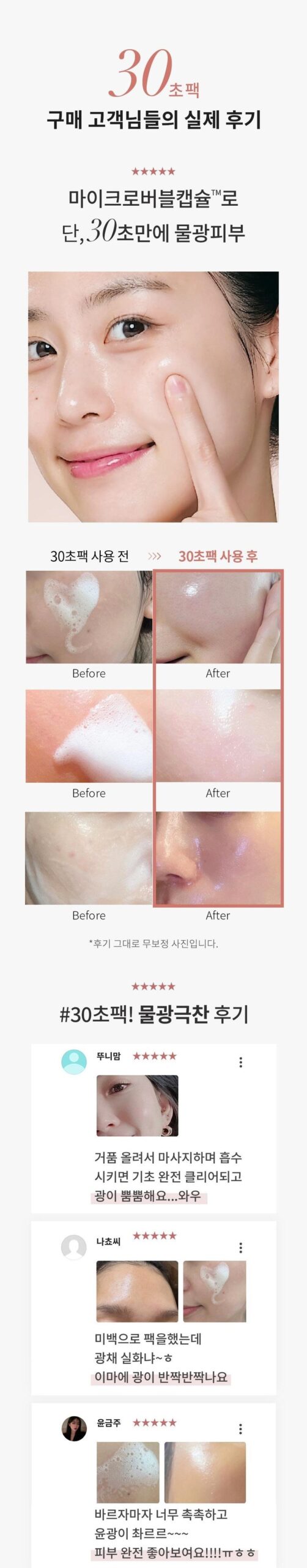 This mask pack is powered by Microbubble Capsule™ technology, which took over 2 years to develop. The innovative formula is designed to deliver rapid results in just 30 seconds.