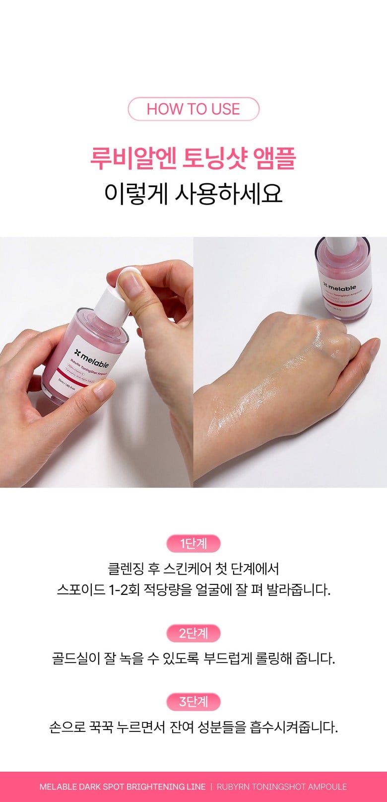 MERABL Ruby Allen Toning Shot PDRN Whitening Ampoule is a powerful brightening serum designed to target pigmentation and dark spots (melasma). This premium Korean ampoule features Ruby PDRN (Polydeoxyribonucleotide) extracted from salmon DNA, known for its exceptional skin regeneration and collagen synthesis properties.
