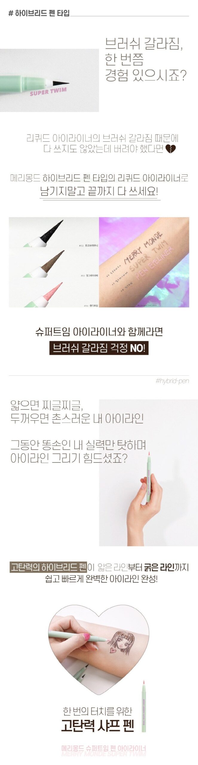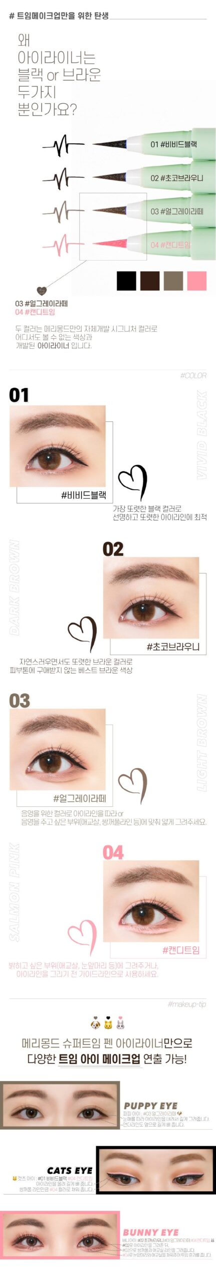 *We inform you that the MERRY MONDE Super Twim Pen Eyeliner should be used after closing the lid and shaking it at least 20 times before use to ensure that the pigments come out stably.