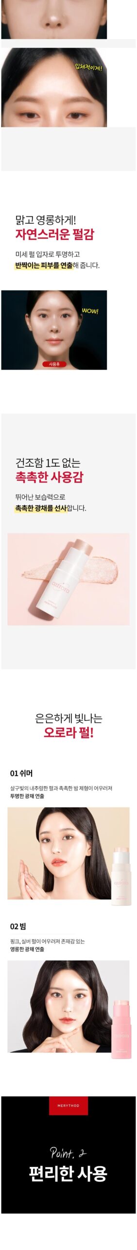 I’ve been using the MERYTHOD Aurora Highlighter for a few weeks now, and I’m genuinely impressed with how natural it looks on my skin. The apricot-colored pearl combined with the moist balm formula creates such a subtle glow that doesn’t appear cakey or overdone. I particularly love how easy it is to apply without needing a brush; just swipe and blend! Plus, its long-lasting durability means I can wear it all day without touch-ups, which is fantastic for busy days.
