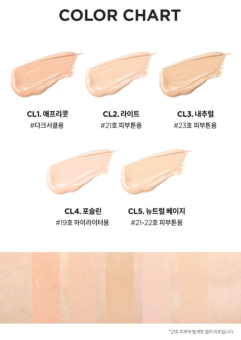 * High fitting Poly-system forms a thin film on the skin to maximize skin adhesion (CL4. Porcelain, CL5. Neutral Beige)Average particle size: 0.25µm (in solvenst)