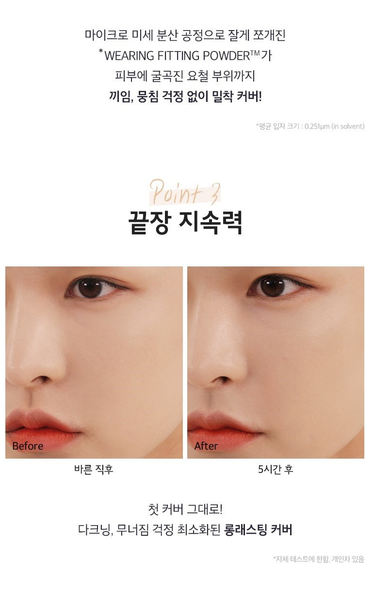 WEARING FITTING POWDER fills up skin irregularities to create smooth, peeled egg skin2. Anti darkening cover