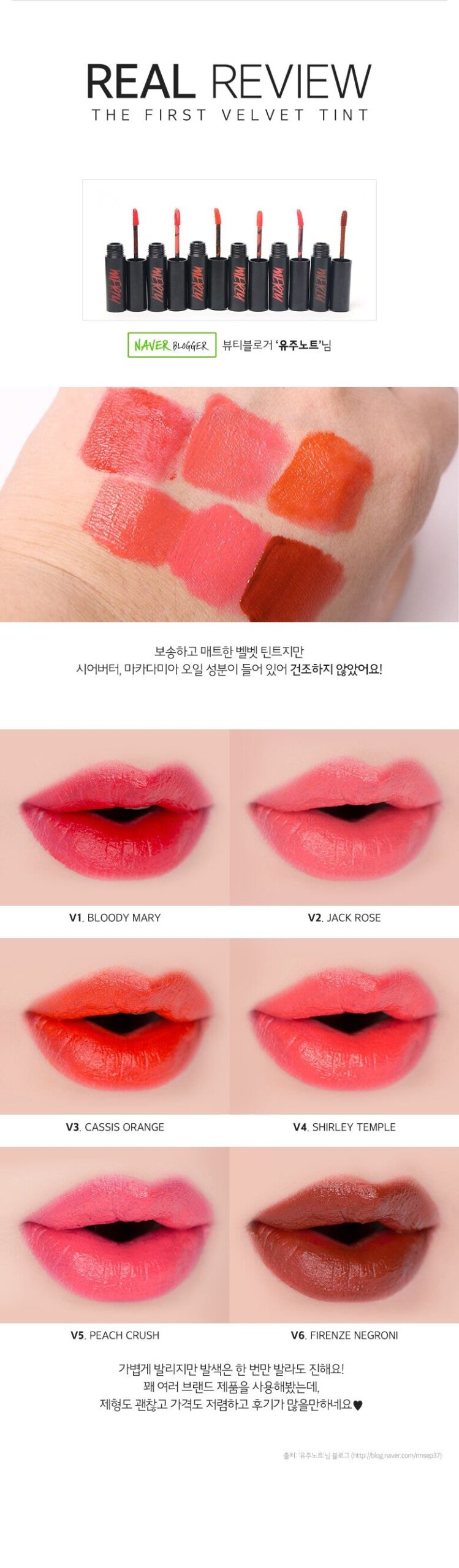 I’ve been using the MERZY The First Velvet Tint for a few weeks now, and I’m thoroughly impressed with its performance. The soft velvet texture adheres beautifully to my lips without feeling heavy or drying them out. I particularly appreciate the inclusion of shea butter and macadamia oil; they keep my lips moisturized while providing that stunning matte finish. The color is intense and vibrant, which boosts my confidence throughout the day, even after meals like rice or coffee—it lasts incredibly well without fading!
