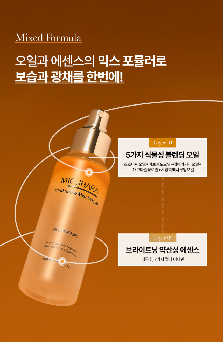 Embrace the glow with the MIGUHARA Vital Shine Mist Serum. Perfect for all skin types, this radiance-boosting mist is your daily dose of hydration and luminosity. Add this essential Korean beauty serum to your routine today and experience the difference of truly vital, glowing skin.