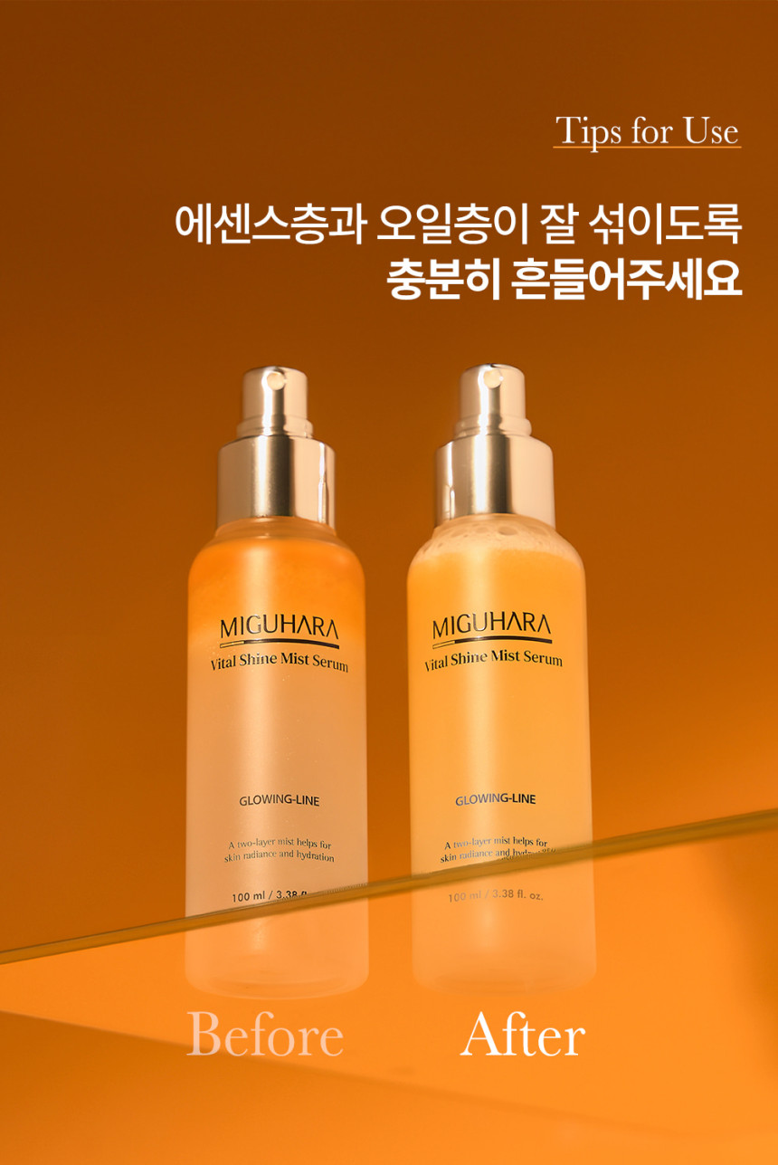 The MIGUHARA Vital Shine Mist Serum isn’t just a mist; it’s a comprehensive skincare treatment in a convenient spray format. Our unique formula combines the hydrating power of a mist with the targeted benefits of a serum, ensuring your skin receives optimal care with every spritz.
