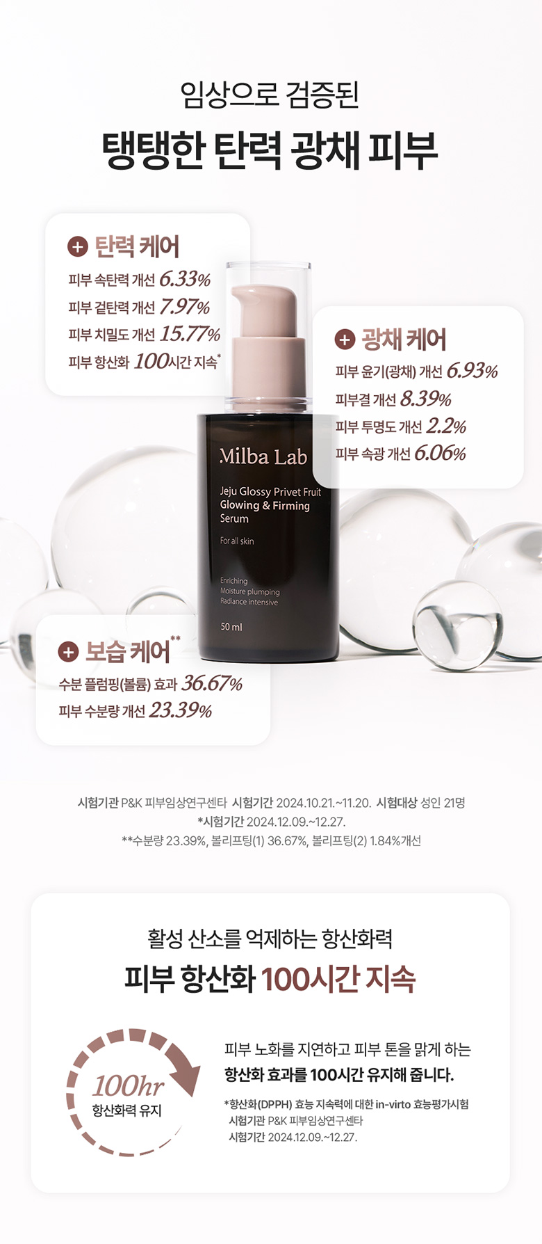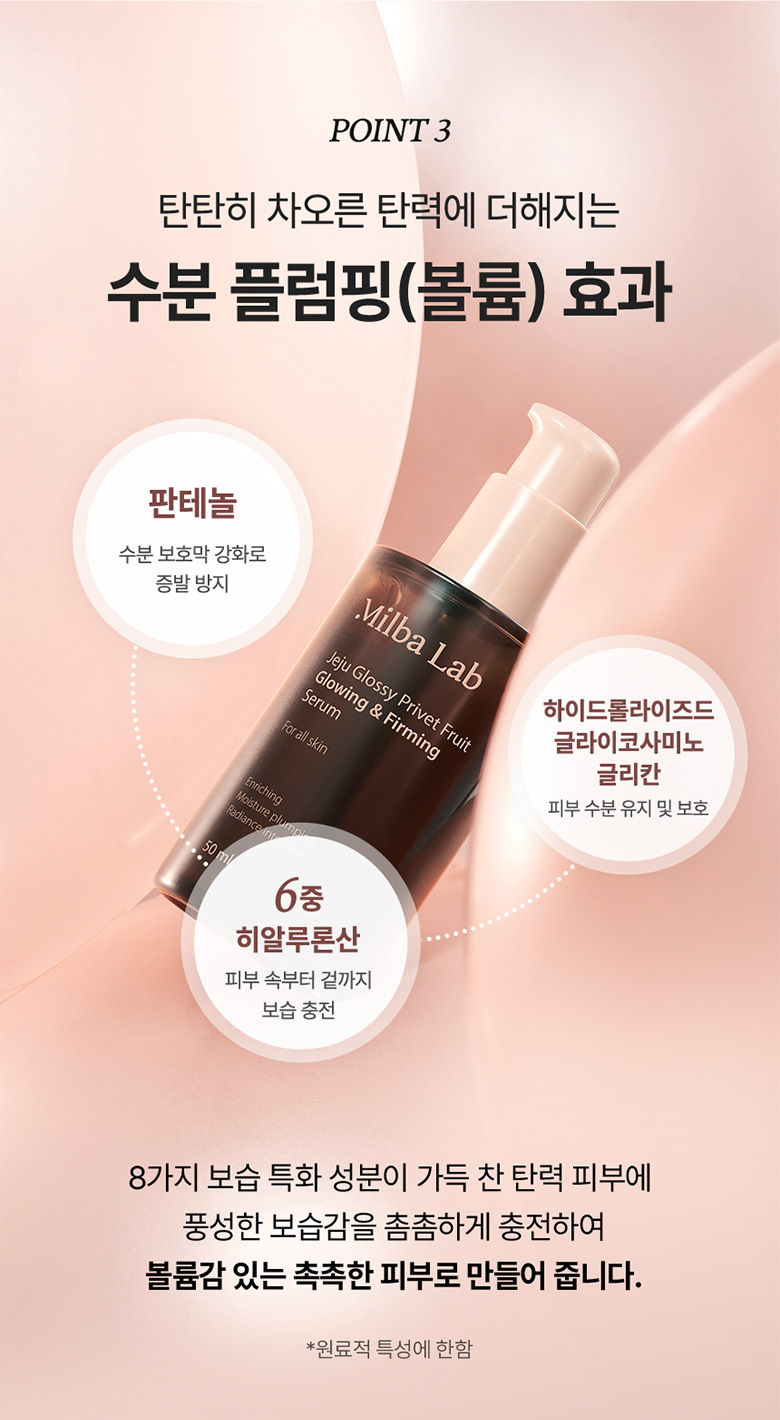 Milba Lab Jeju Glossing Privet Fruit Glowing & Firming Serum harnesses the power of Yeojeongsil (Solomon’s Seal) from Jeju Island to deliver radiant, firm skin. This luxurious serum combines traditional Korean botanical wisdom with modern skincare technology, promoting both immediate glow and long-term firmness improvement.