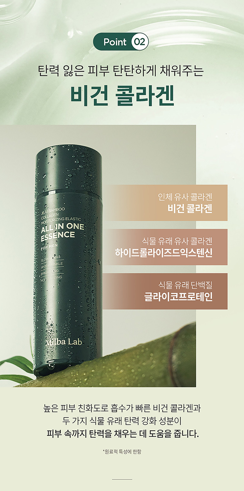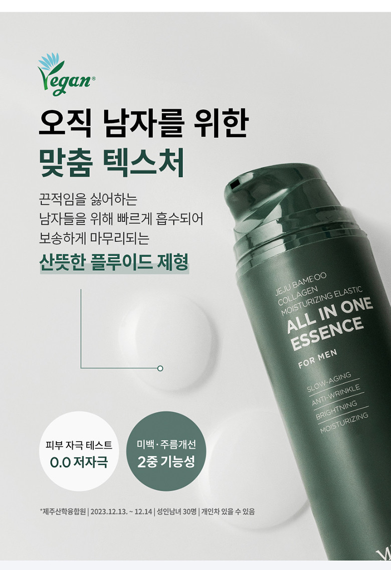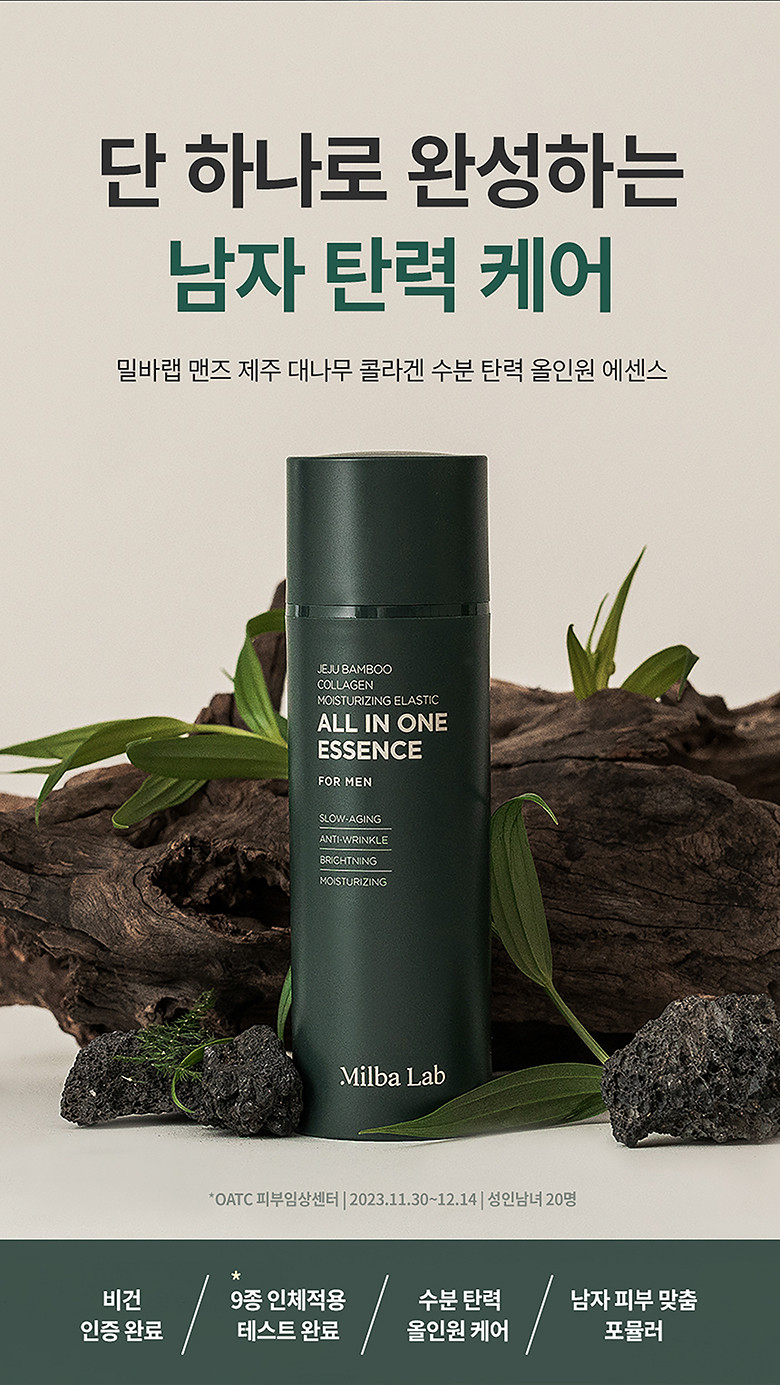 Milba Lab Men’s Jeju Bamboo Collagen Moisturizing Elastic All-in-One Essence is a comprehensive skincare solution designed specifically for men. Featuring Jeju bamboo extract and marine collagen, this all-in-one replaces toner, essence, and lotion for simplified grooming. The formula provides deep hydration while promoting skin elasticity and firmness.