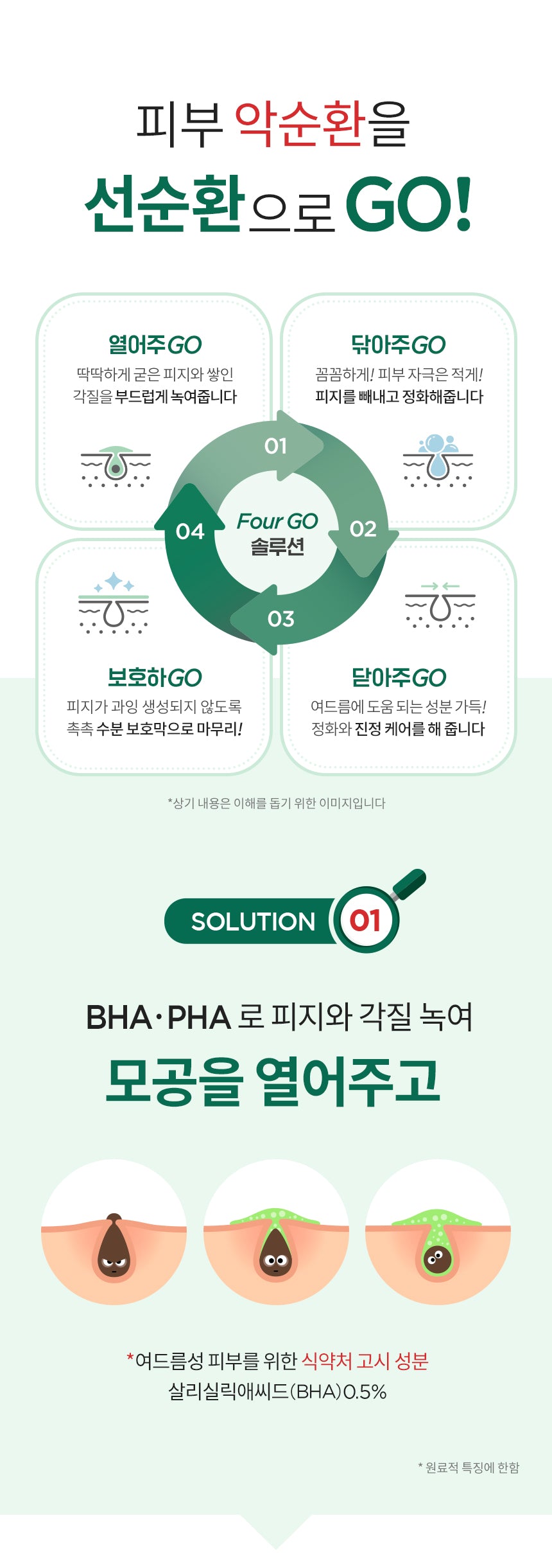 – Opening : Gently dissolves hardened sebum and dead skin cells.