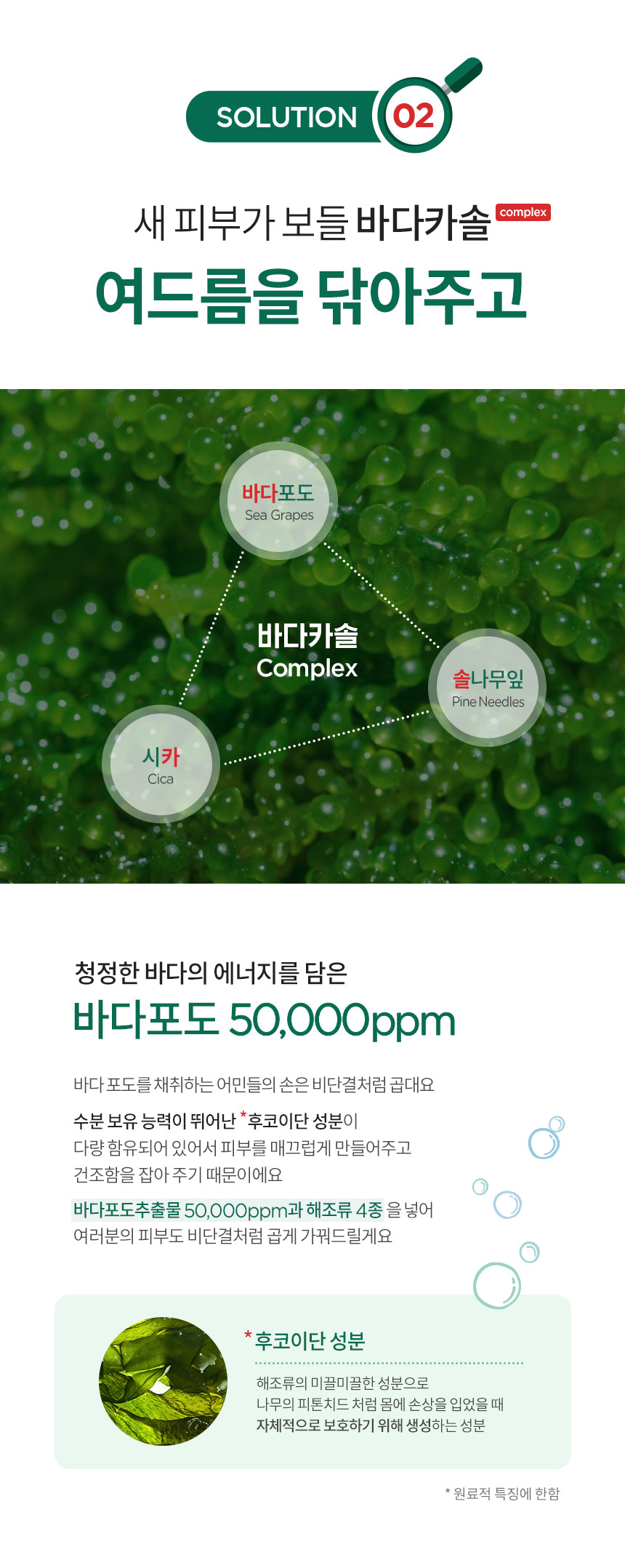 : Contains a large amount of fucoidan ingredient with excellent moisture retention ability to make skin smooth and prevent dryness.