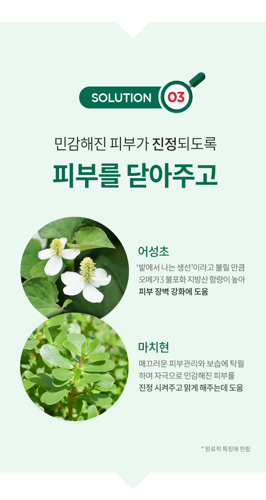 – Houttuynia cordata – Helps strengthen the skin barrier.