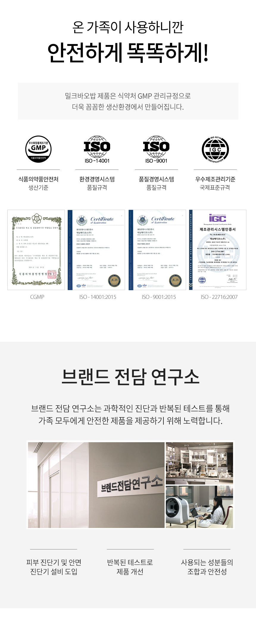 Milk Baobab products are made in a more meticulous production environment under the GMP management regulations of the Ministry of Food and Drug Safety.