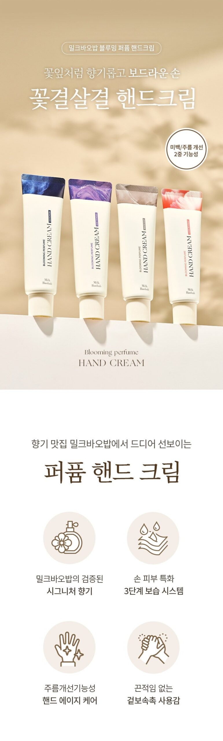 手が魔法のように滑らかになる。乾燥で苦しむ必要はもうない、このクリームこそが愛の形!気分まで明るくしてくれる香り。