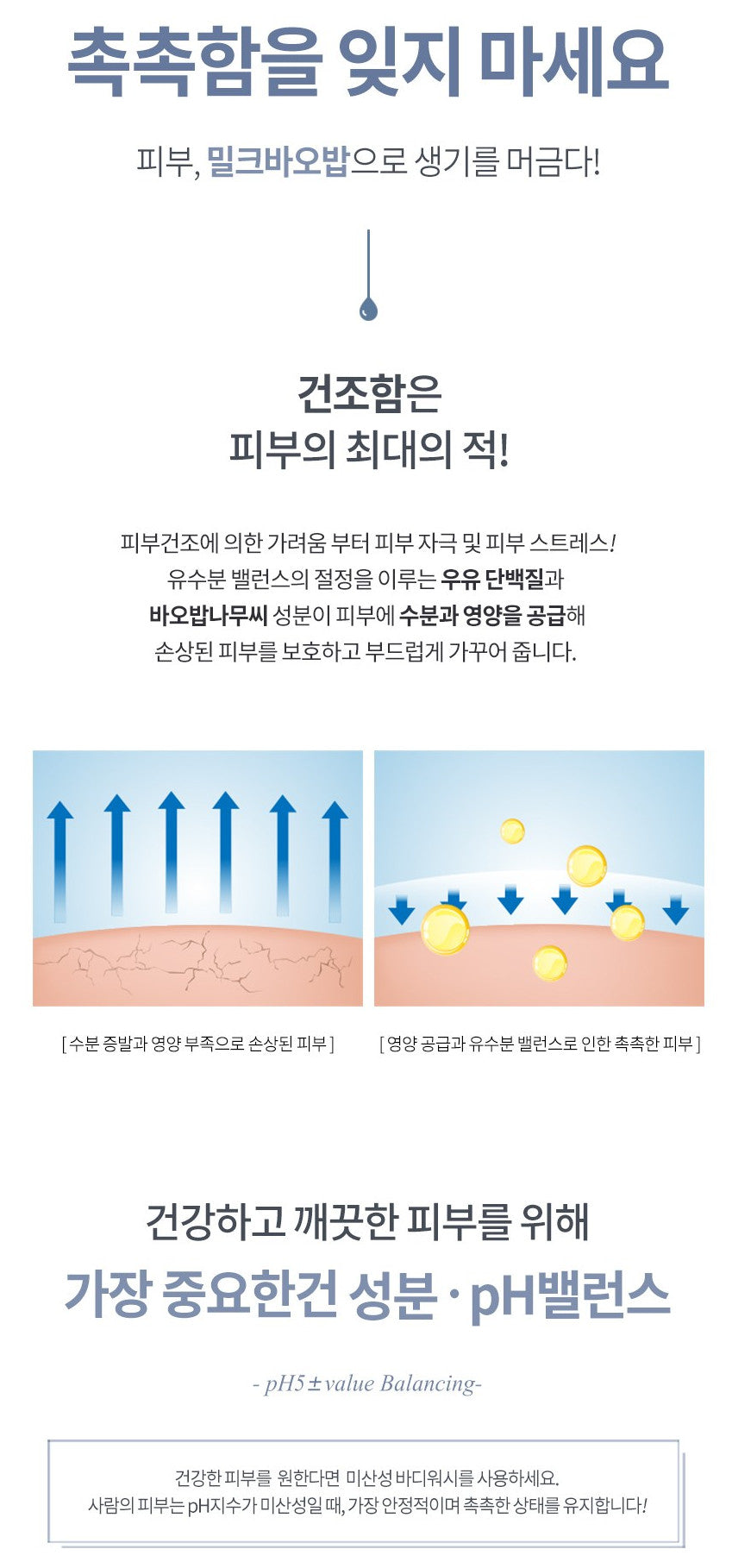 Milk protein and baobab seed ingredients, which are the pinnacle of oil-water balance, provide moisture and nutrition to the skin to protect and soften damaged skin.