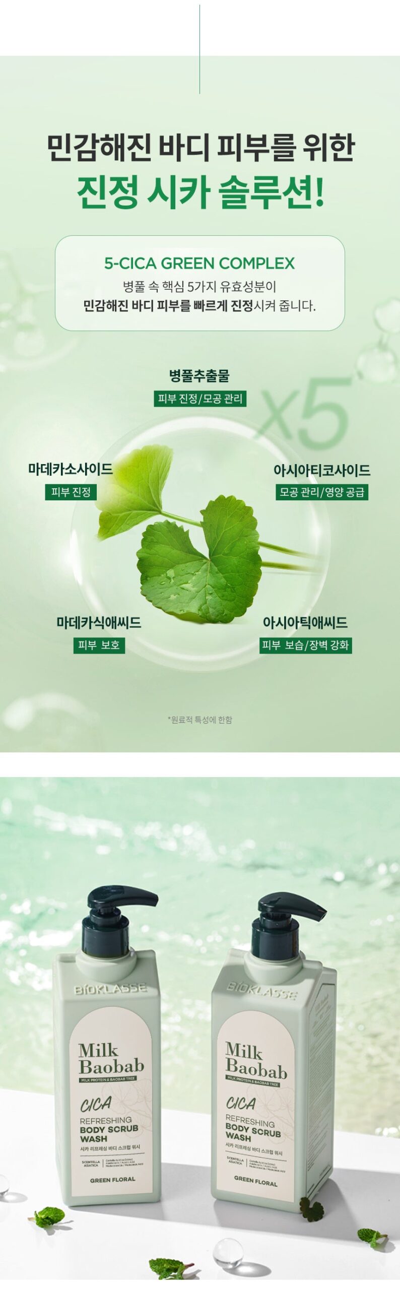 Five key active ingredients of Centella asiatica quickly soothe sensitive body skin.