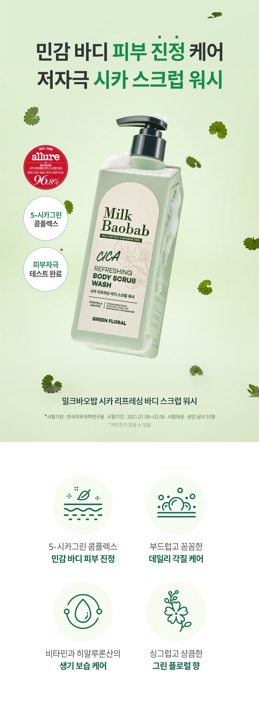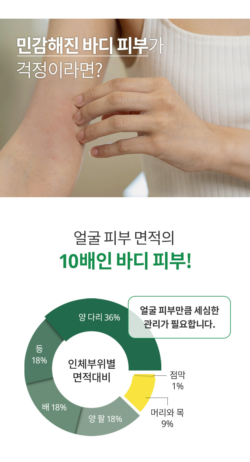 Five key active ingredients of Centella asiatica quickly soothe sensitive body skin.