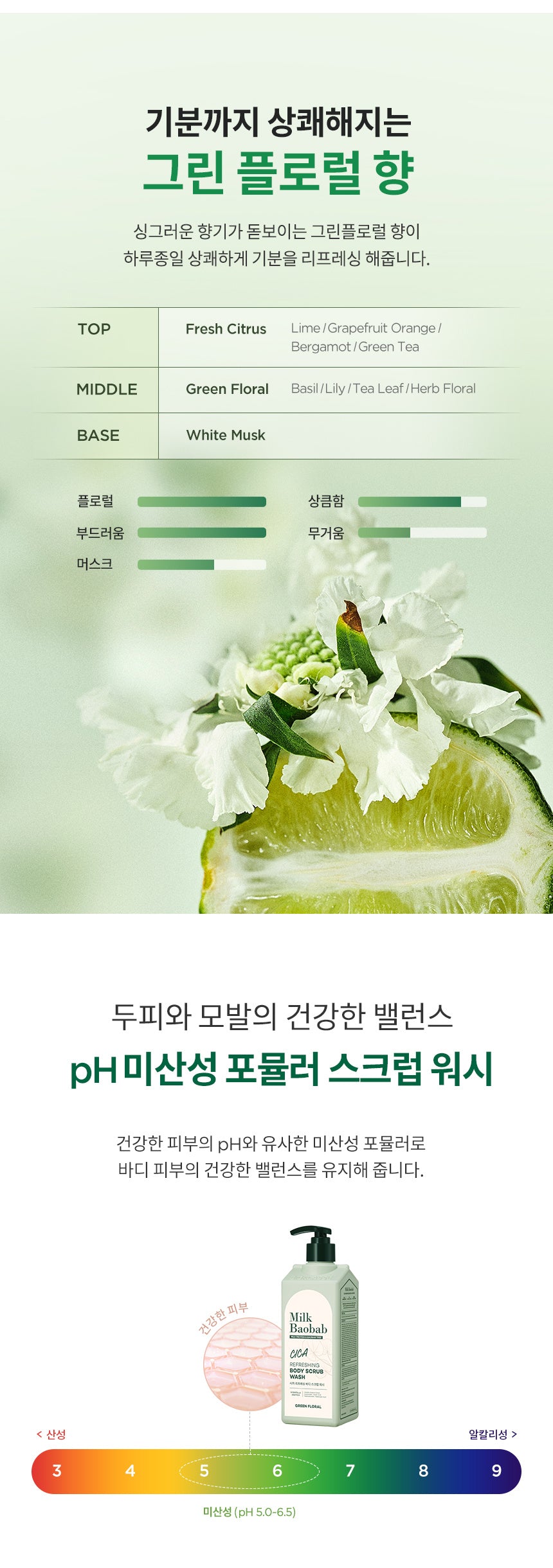– Fresh and refreshing green floral scent