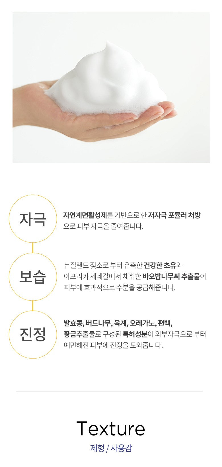 Patented ingredients consisting of fermented soybeans, willow, meat, oil, oregano, cypress, and golden extract help soothe skin sensitive to external irritants.
