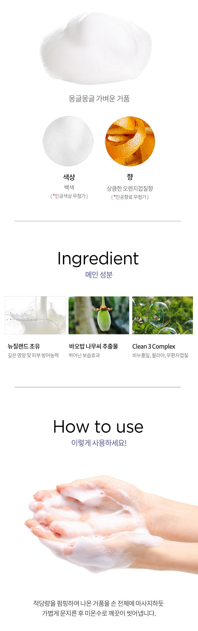 Pump an appropriate amount and lightly rub the resulting foam onto your entire hand as if massaging it, then rinse thoroughly with lukewarm water.