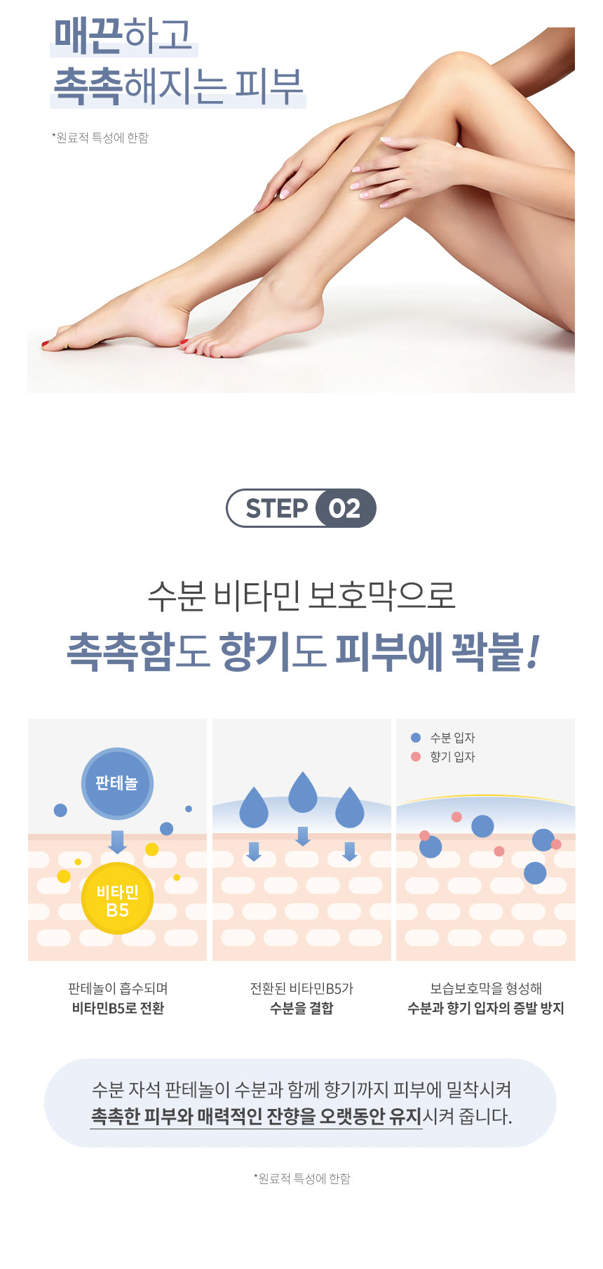 6 Hyaluronic Acid and Moisture Magnet Panthenol keep a gentle scent longer on moist skin.