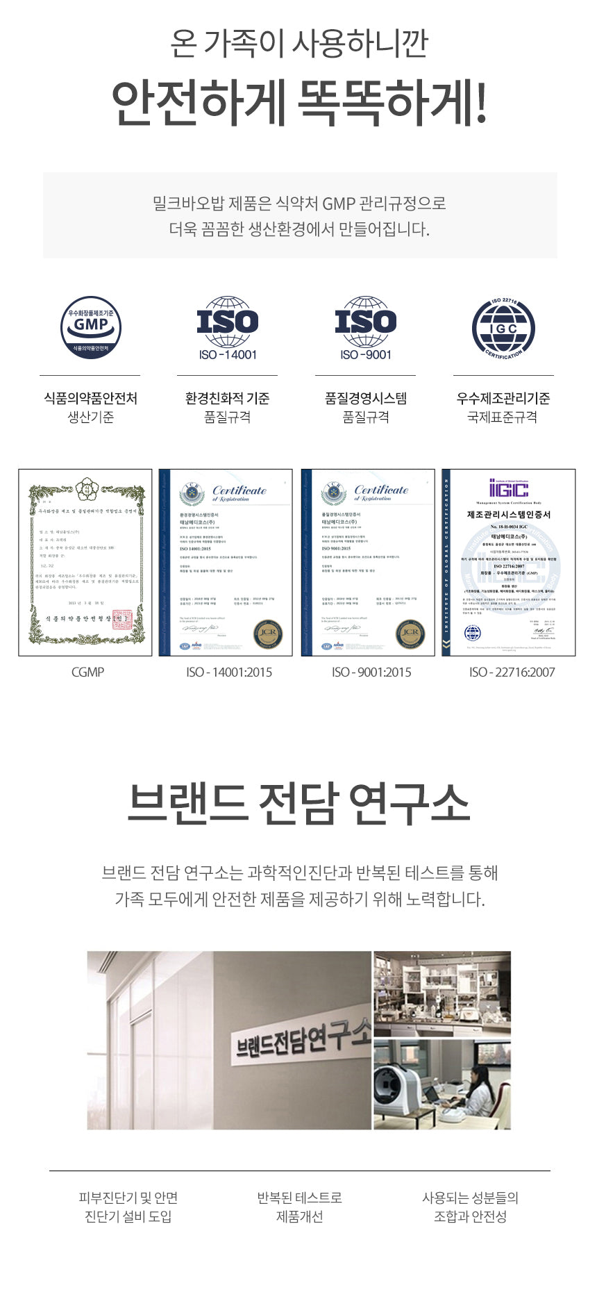 Milk Baobab products are made in a more meticulous production environment under the GMP management regulations of the Ministry of Food and Drug Safety.